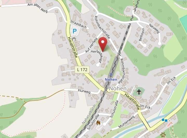 Das Grundstück liegt in einem kleinen Wohngebiet am Ortsrand der Gemeinde Nohen im Landkreis Birkenfeld. Die Umgebung ist ländlich geprägt mit direkter Nähe zu Wiesen und Waldflächen, während die Stadt Idar-Oberstein mit Einkaufsmöglichkeiten und Infrastruktur in kurzer Fahrzeit erreichbar ist.