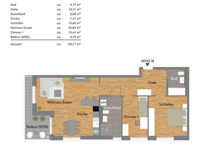 - Alle Wohnungen haben einen Balkon oder eine Terrasse