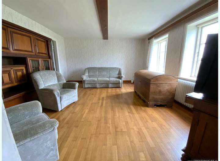 Die solide Wohnimmobilie bietet mit 5 Zimmern im Erdgeschoss, sowie 3 Zimmern im Obergeschoss viel Platz für Familie und Gäste. Zwei Bäder und zwei Küchen sind vorhanden. Es besteht Modernisierung- / Sanierungsstau ( Reetdach, Bäder, Küchen, Böden usw.) Die schönen Holzsprossenfenster wurden ca. 2002 installiert.
