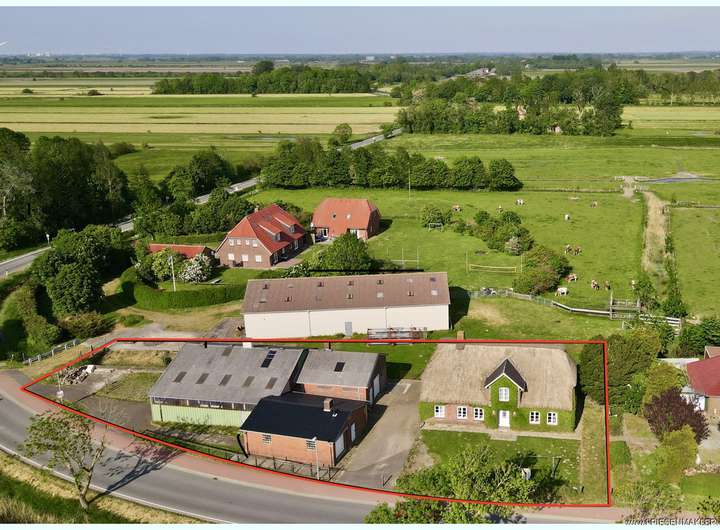 Halbinsel Eiderstedt: Solides Reetdachhaus mit großem Nebengebäude ! Optional Hallenzukauf möglich !