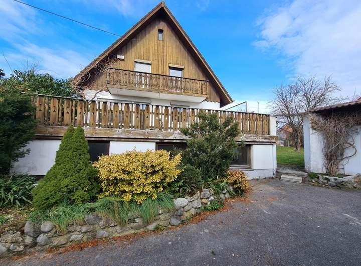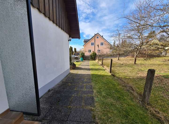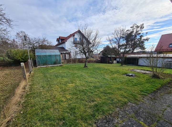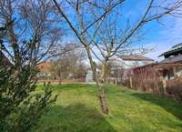 Es handelt sich um Allgemeines Wohngebiet. Das Grundstück liegt nicht im Bereich eines rechtskräftigen Bebauungsplanes, somit kommt hier der § 34 des Baugesetzbuches zur Anwendung (Nachbarschaftsbebauung). Nach mündlicher Auskunft der Gemeinde darf hier ein Einfamilienhaus, zwei Einfamilienhäuser oder auch ein Einfamilienhaus zusammen mit einem Doppelhaus erstellt werden. Denkbar ist auch ein Mehrfamilienhaus, wie nebenstehend.