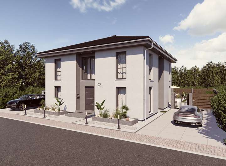 Diese zweigeschossige Stadtvilla besticht durch ein großzügiges Wohnkonzept und moderne Architektur. Sie bietet auf zwei Etagen ausreichend