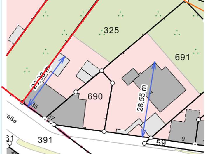 Die Bebauung des Grundstücks ist in 2-geschossiger Bauweise, zuzüglich ausgebautem Dachgeschoss, mit z.B. 4 Wohneinheiten, möglich. Gegen die Schaffung eines 1-geschossigen Anbaus im rückwärtigen Grundstücksbereich, bestehen grundsätzlich keine planungsrechtlichen Bedenken. Die Stellung der Garage sowie weiterer Stellplätze, sind zu prüfen. Trauf- sowie Firsthöhen sind lediglich der nachbarschaftlichen Bebauung anzupassen.