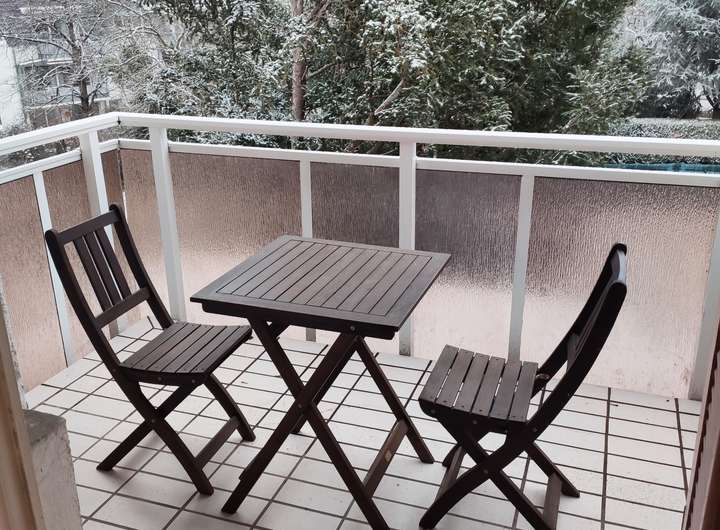 Die Wohnung ist überwiegend mit Holzdielen ausgestattet. Geheizt wird mit einem Gasofen. Bei Bedarf steht eine Infrarotheizung im Schlafzimmer, sowie ein Heizlüfter im Bad zur Verfügung.