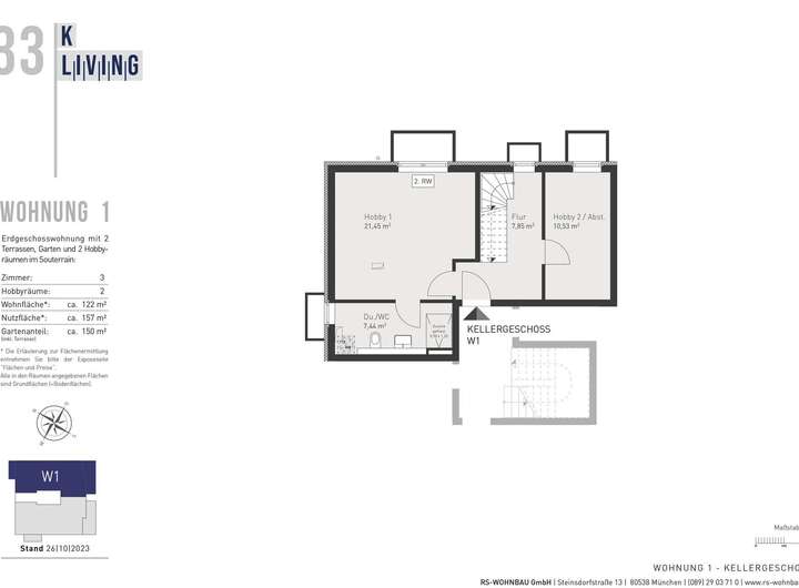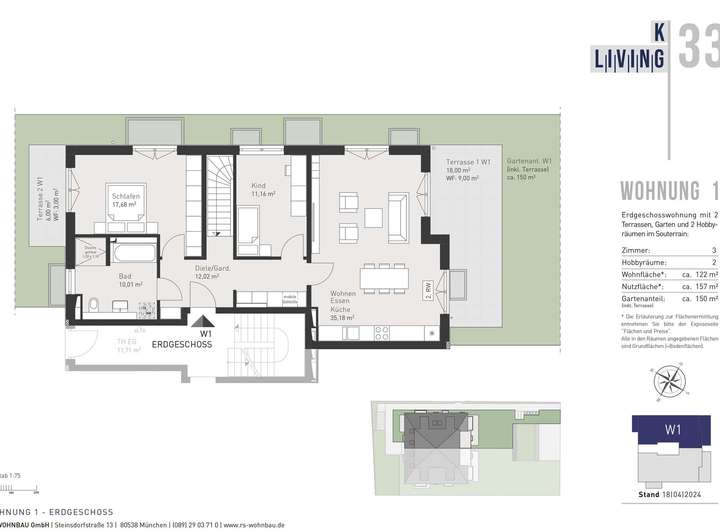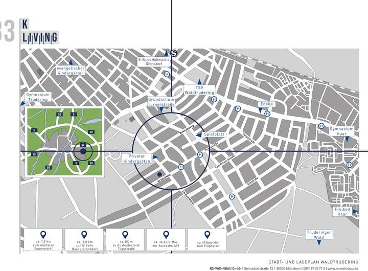 In diesem sehr attraktiven 6-Parteien-Stadthaus (KfW-40/A+/QNG) haben wir zwei großzügige Erdgeschoss mit sonnigen Privatgärten und tageslichthellen Souterrainbereichen in schönster Wohnlage Waldtruderings errichtet.