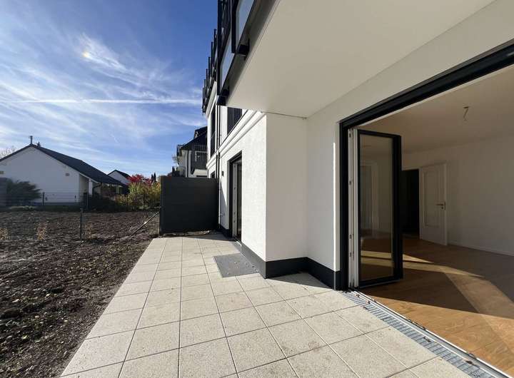 BEZUGSFERTIG -- NEUBAU-3-Zimmer-Gartenwohnung mit sonniger Terrasse und taghellem Souterrain