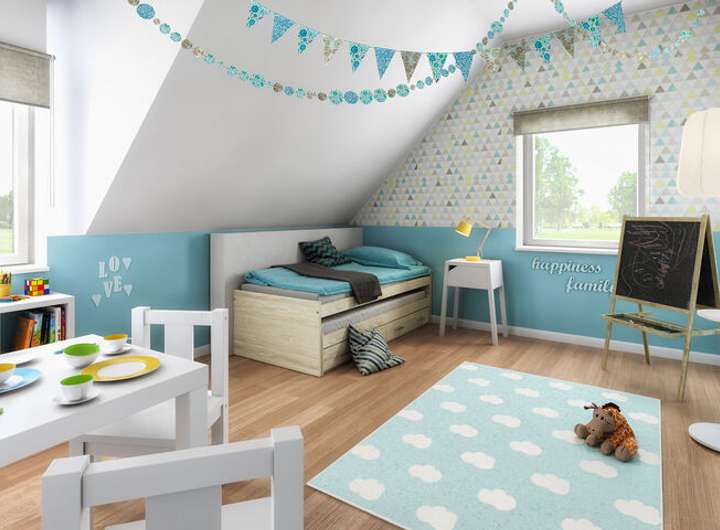 Das Flair 134 ist ein Haus für die ganze Familie mit genügend Freiraum für jeden. Die offen gestaltete Diele führt Sie direkt ins großzügig angelegte, sonnendurchflutete Wohnzimmer mit gemütlicher Essecke. Auch die Küche bietet ausreichend Platz für ein gemeinsames Familienfrühstück.