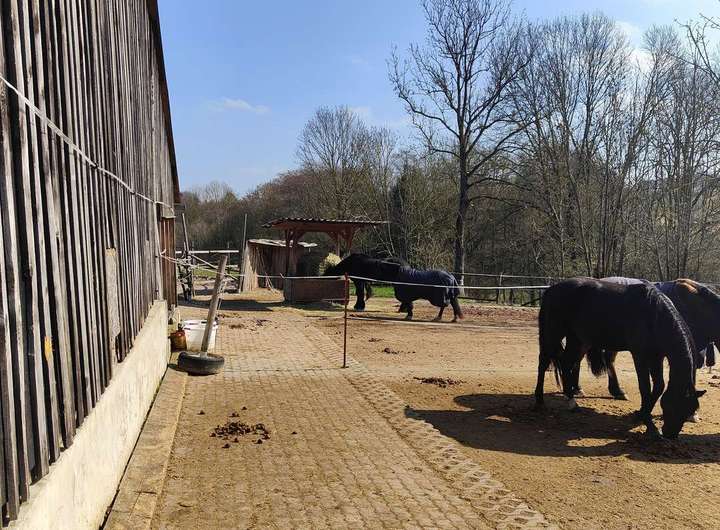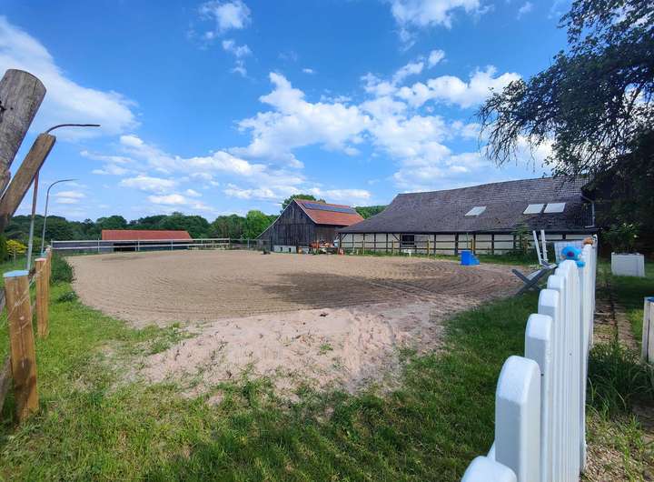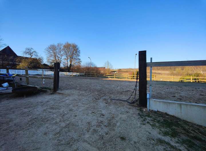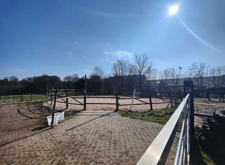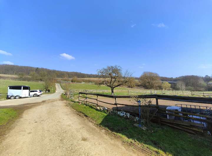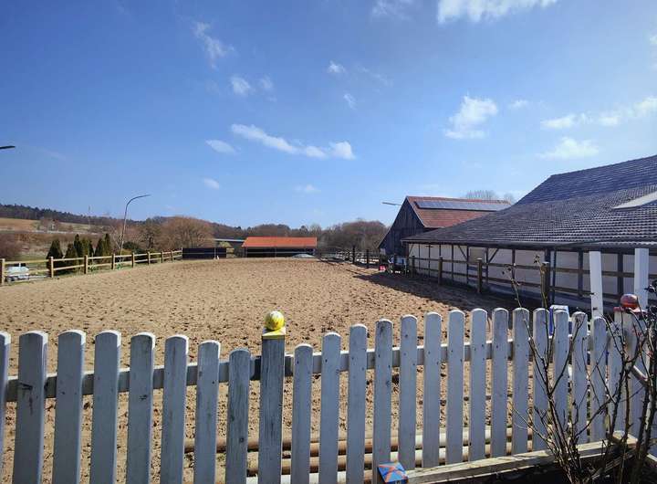 Weiterhin gibt es zwei grosse Scheunen mit Offenstallung und befestigten Paddocks, einen ganzjährig bereitbaren grossen Roundpen, sowie eine neue Scheune als Pferde- und Schlepperunterstand.