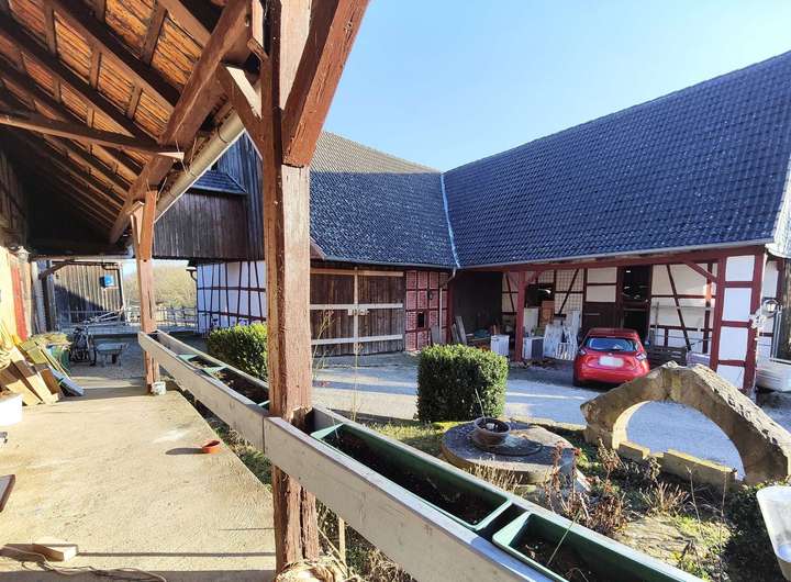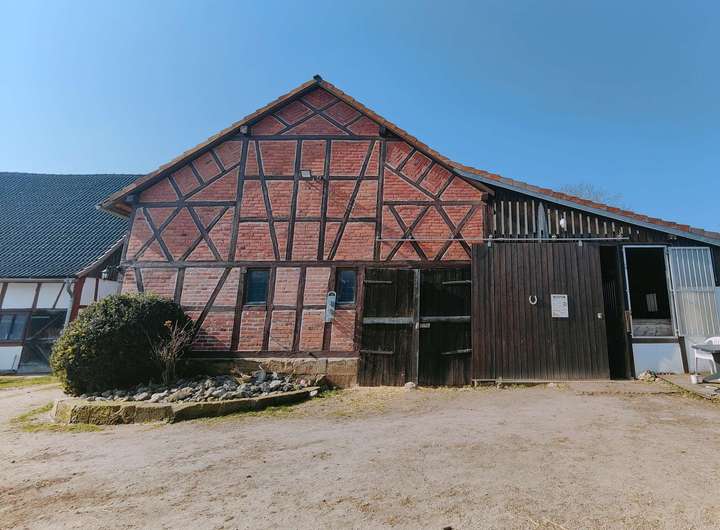 Die einstige Hofstelle mit Gaststätte wurde von den jetzigen Eigentümern von den Grundmauern auf komplett saniert und erst vor drei Jahren in seiner jetzigen Form fertiggestellt. Entstanden ist ein wunderschönes und gemütliches Landhaus mit Pferdehaltung. Diese ist seit einiger Zeit aus gesundheitlichen Gründen verpachtet und hat von der Rückseite des Anwesens her eine eigene Zufahrt mit Parkplätzen.