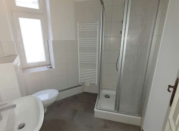 - modern gefliestes Duschbad mit Fenster
