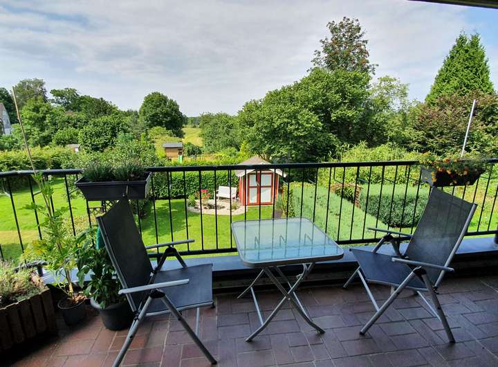 Beide Räume laden direkt auf den sehr großzügigen Balkon ein. Verweilen Sie gemütlich nach Feierabend auf dem Sonnenbalkon.