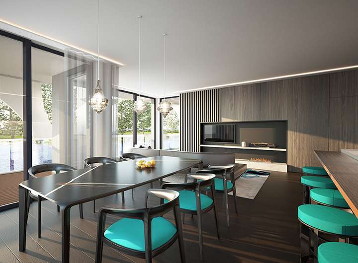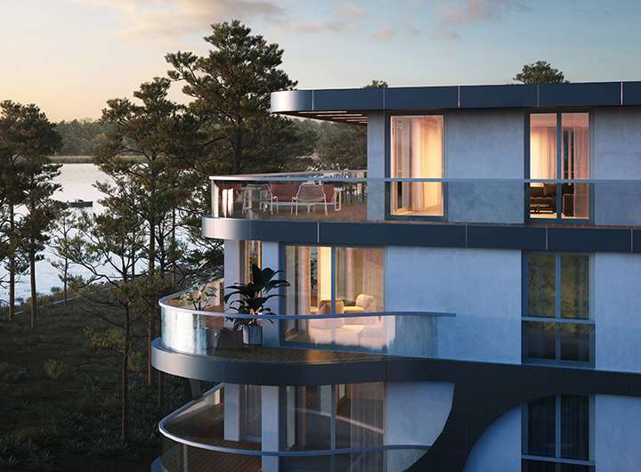 Alle Wohnungen bieten großzügige Außenbereiche durch Terrassen oder Balkone, die einen direkten Bezug zu Wasser, Natur und Weite schaffen. Mit lackierten Bootsplanken, Riva-Mobiliar und teilweise Außenpools entstehen private Top Decks mit einem maritimen Flair.