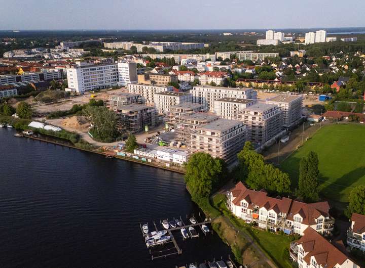 RIVA LIVING BERLIN ist Teil eines vielseitig genutzten Quartiers, das die Vorzüge urbanen Lebens mit kurzen Wegen vereint. Es besteht aus sechs Baukörpern, die entlang des idyllischen, unverbaubaren Uferwegs des neuen Quartiers positioniert sind. Diese repräsentieren die exklusivsten der etwa 440 neu entstehenden Wohnungen und bieten ein lebendiges Miteinander für Menschen jeden Alters. Von renommierten KITA WABE e. V. bis hin zu speziellen Best-Ager-Angeboten ist für alle Lebensphasen etwas dabei. Mit einer Fülle von Wasser, Grünflächen und verschiedenen Annehmlichkeiten wie Outdoor-Sportmöglichkeiten, einer eigenen Marina und Riva Sharing entsteht ein synergetisches Ökosystem, das das Gefühl eines urbanen Lebens in Balance fördert.