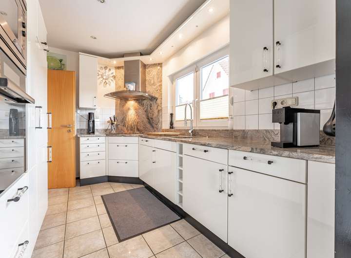 Hochwertige Einbauküche mit Granit-/Marmor-Arbeitsplatte und Marken-Einbaugeräten