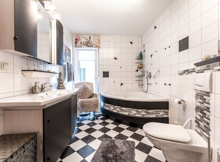 Schlafbereich im Westturm, Badezimmer im Ostturm