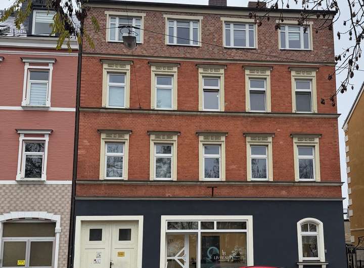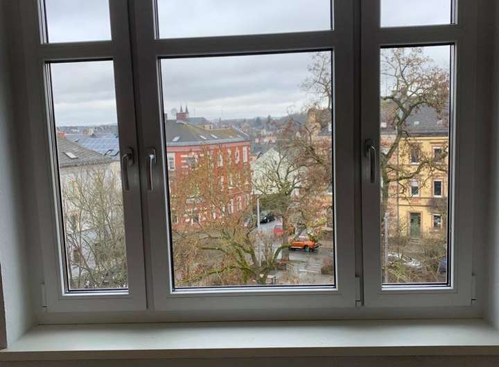 In der zweiten Etage des gepflegten und schönen Altbaus im Zentrum von Hof liegt diese ruhige 85qm große 3-Zimmer-Wohnung mit Blick auf einen kleinen Park. Die Wohnung wurde vollständig saniert (gespachtelte und gestrichene Wände und Decke, Bad mit Badewanne, Eichen-Echtholz-Parkett, neue Einbauküche mit Herd, Kühlschrank und Geschirrspüler.