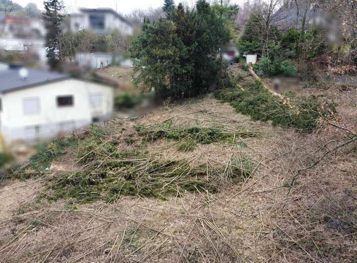 Das Grundstück liegt wie auf einem Hochplateau und ist derzeit gerodet.
