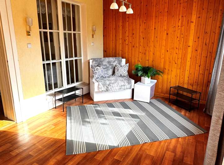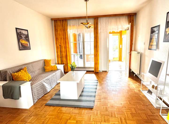 Gemütliches Wohnzimmer mit Zugang zur Terrasse und zum Garten