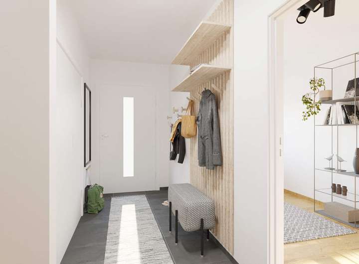 Betreten Sie Ihr zukünftiges Zuhause: Ein einladendes Haus mit 5 großzügigen Zimmern erwartet Sie. Im Erdgeschoss finden Sie ein geräumiges Wohnzimmer, das direkt auf die schöne Terrasse führt – ideal für entspannte Stunden im Freien. Die angrenzende offene Küche bietet jede Menge Platz für kulinarische Kreativität. Ein Gäste-WC rundet das Angebot auf dieser Ebene ab.