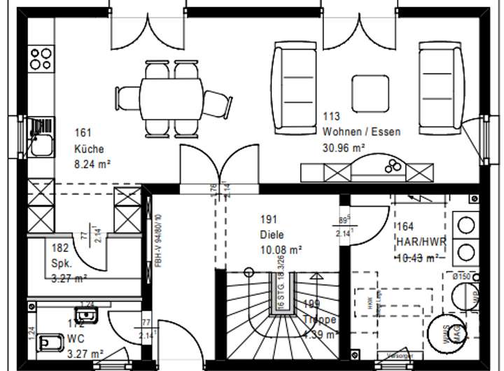 sich zusätzlich ein Gäste-WC sowie ein großzügiger Hauswirtschaftsraum.