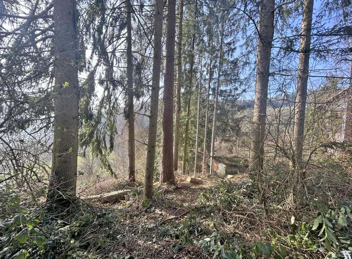 Wer eine wundervolle Aussicht sucht und gerne naturverbunden leben möchte, der wird von diesem besonderen Stückchen Erde begeistert sein. Wie im Dornröschenschlaf mit umfangreichem Baumbestand präsentiert sich dieser stark hanglagige Bauplatz ganz oben über dem Tal des Gammelsbachs.