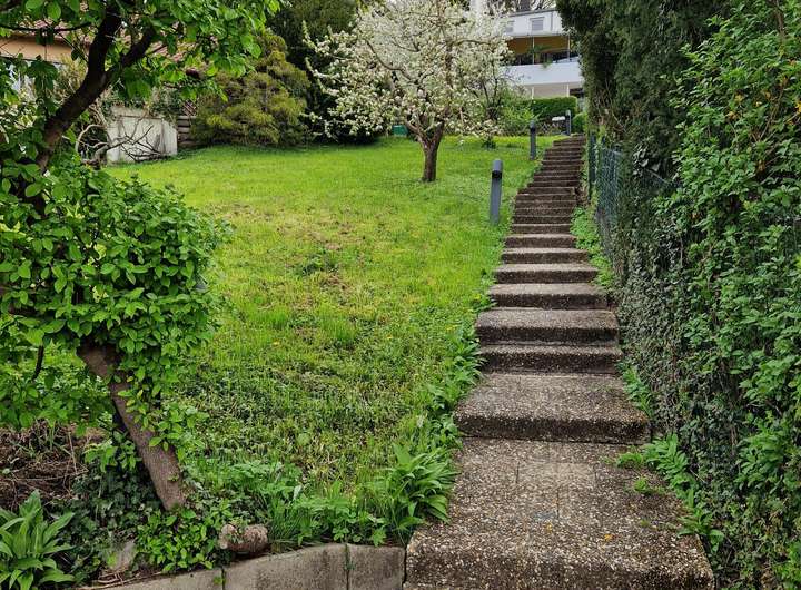 Der Zugang erfolgt über mehrere Treppenstufen entlang des Hangs.
