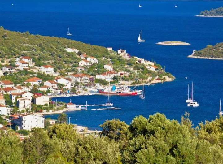 In der Stadt Vinišće, Gemeinde Marina, steht ein Baugrundstück von 915 m2 mit freiem Blick auf das Meer zum Verkauf. Das Land hat eine regelmäßige Form und ist leicht kaskadenförmig zum Meer hin ausgerichtet.