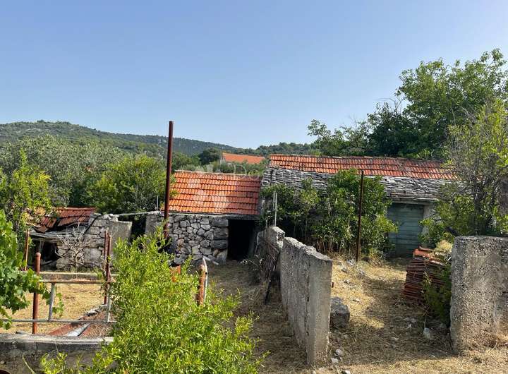 Auf dem Grundstück selbst gibt es zwei kleinere Steinhäuser und einen Olivenhain. Das Grundstück liegt cc. 300 m vom Meer und den nahe gelegenen Stränden entfernt. Es gibt eine gepflegte Zufahrtsstraße zum Grundstück