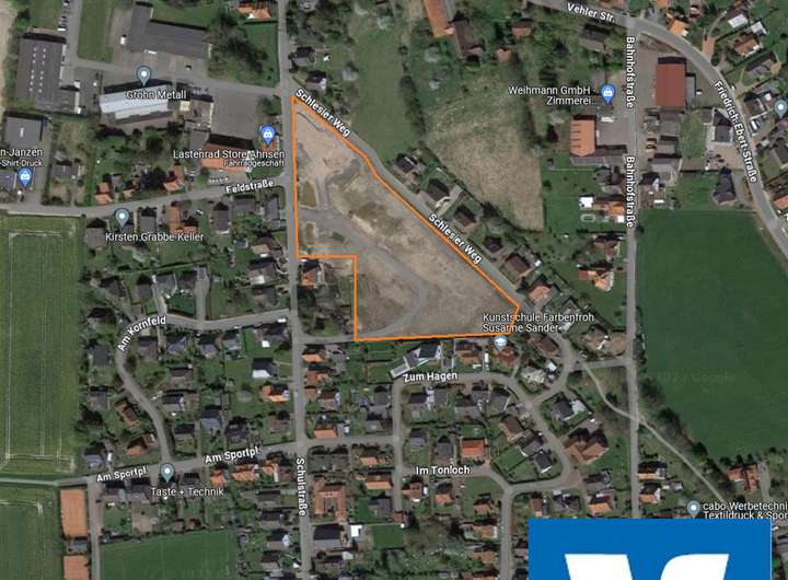 Die attraktiven Bauplätze liegen in einem neuen Wohngebiet (WA) und werden von der Schulstraße und dem Schlesierweg eingegrenzt.