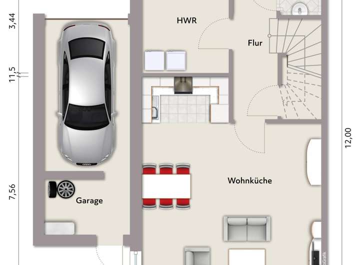 Ebenfalls im EG finden Sie den HWR mit Waschmaschinenanschluss , ein Gäste WC sowie