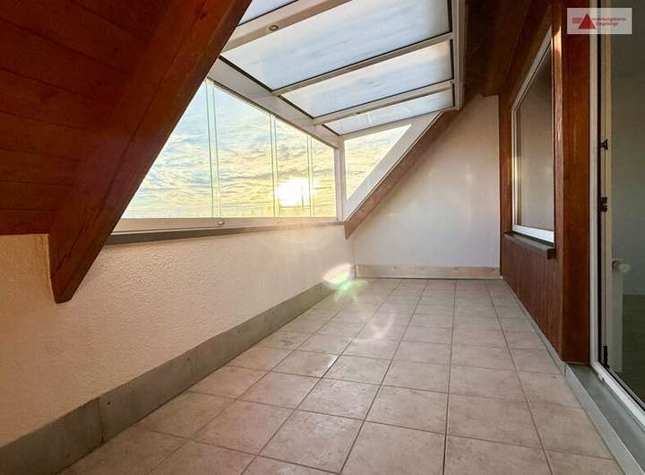 Im unteren Bereich befinden sich das einladende Wohnzimmer mit Zugang zum großzügigen verglasten Sonnenbalkon, eine Küche, das Schlafzimmer sowie das komplett erneuerte, stilvolle Tageslichtbad. Dieses bietet Komfort pur – mit Eckwanne, ebenerdiger Dusche, WC, Waschtisch und dimmbarer Beleuchtung für entspannte Stunden. Im oberen Bereich erwartet Sie ein weiteres, flexibel nutzbares Zimmer, das in zwei Bereiche unterteilt ist und sich ideal als Schlafzimmer mit Bürobereich, separatem Ankleidebereich, geteiltes Kinderzimmer oder kreativer Hobbybereich eignet.