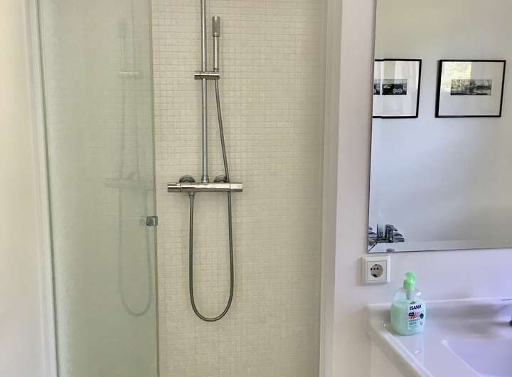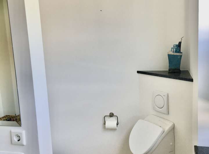 Bambusstäben-Parkett und Fussboden-Heizung befindet sich in allen Räumen. Im Wohn-Essbereich sorgt ein Dänischer Kaminofen für behagliche Wärme. Das grosszügige Bad besitzt eine Dusche, Badewanne und ein WC mit getrennten Pissoir.