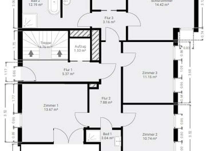 Das Haus bietet helle, hohe Räume und viel Platz für individuelle Wohnideen. Die Aufteilung erlaubt bei Bedarf die Nutzung als bis zu drei separate Wohneinheiten – perfekt für Mehrgenerationenwohnen, Vermietung oder Arbeiten und Wohnen unter einem Dach. Der Grundriss eröffnet zahlreiche Gestaltungsmöglichkeiten und viel Raum zur persönlichen Entfaltung.