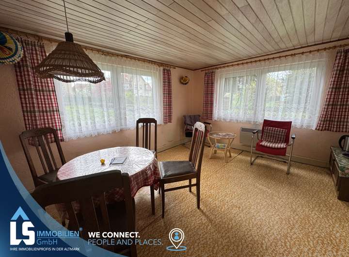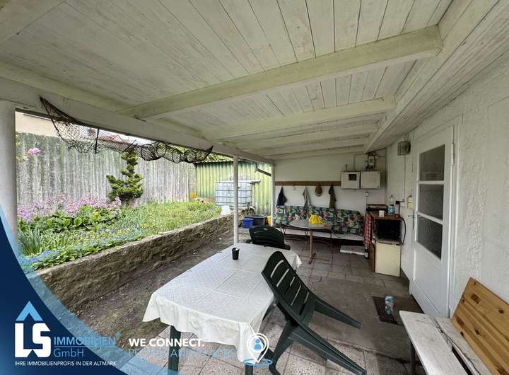 Die Laube auf dem Grundstück ist in einem guten Zustand und bietet Ihnen die Möglichkeit, gemütliche Stunden im Freien zu verbringen. Sie ist ideal für gesellige Grillabende mit Freunden oder als Rückzugsort für entspannte Stunden alleine.