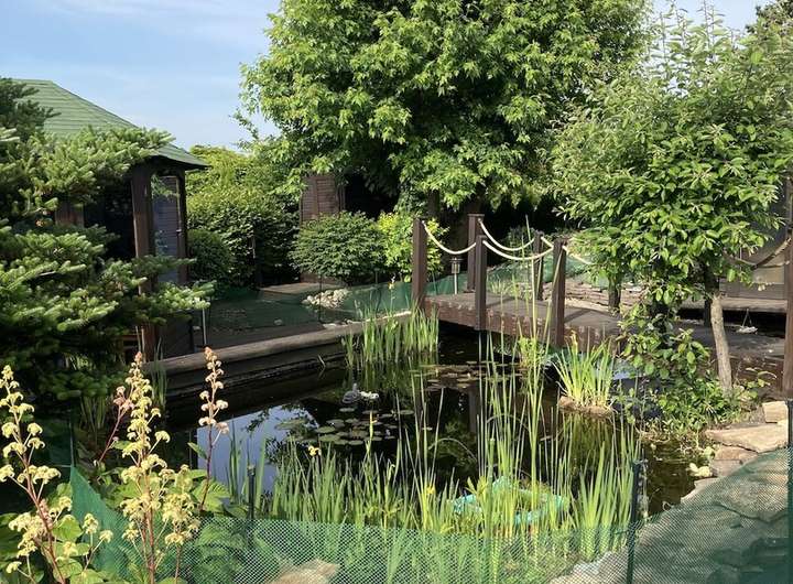 Zwei Regenwasserzisternen stellen ca. 4000l zur Bewässerung des Gartens zur Verfügung.