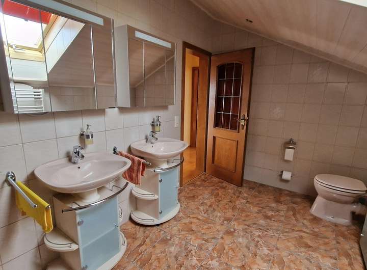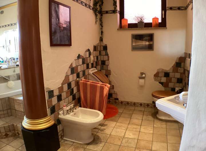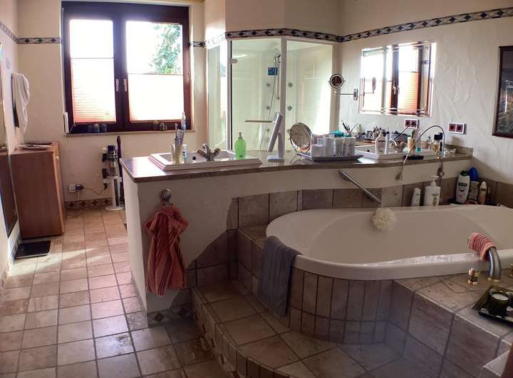 • exklusives Wellness-Bad (2005) mit Wanne, großer Dusche, Dampfdusche, Radio/Fernseher/DVD, Bidet, Urinal, WC und Gäste-WC, ca. 27m²