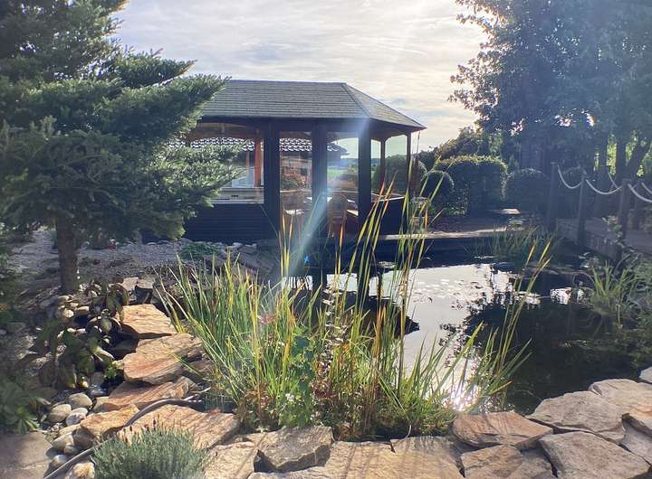 Das außergewöhnliche Anwesen liegt in einem sehr ruhigen und bevorzugten Wohngebiet in Haarth, einem Ortsteil der Gemeinde Untersiemau. Auf dem 1193m² großen Grundstück befinden sich neben dem Gebäude ein Teich mit Brücke, ein großer Pool, ein Pavillon mit Whirlpool, zwei Gerätehäuschen, Rasenflächen und ein Steingarten. Fahrzeuge können in einer Doppelgarage, einem höheren Doppelcarport und auf einem Stellplatz untergebracht werden.