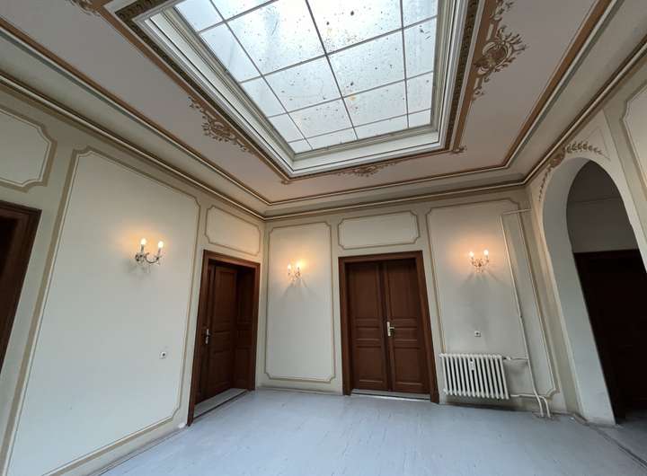 Bei der dreistöckigen Villa handelt es sich um eine attraktive Immobilie, die durch eine gehobene Innenausstattung besticht und ab dem 24.4.2024 bezogen werden kann. Zehn schöne Zimmer mit bieten viel Raum zur persönlichen Entfaltung und individueller Einrichtung. Besonders hervorzuheben ist das beeindruckende Vestibül und Treppenhaus mit Struck, Jugendstil-Malereien und Wandornamenten. Der großzügige Parkgarten von 4500 Quadratmetern, bietet Ihnen genügend private Fläche im Freien die nach Ihrem Belieben gestaltet werden kann . Der monatliche Mietpreis liegt bei 2.150 Euro.