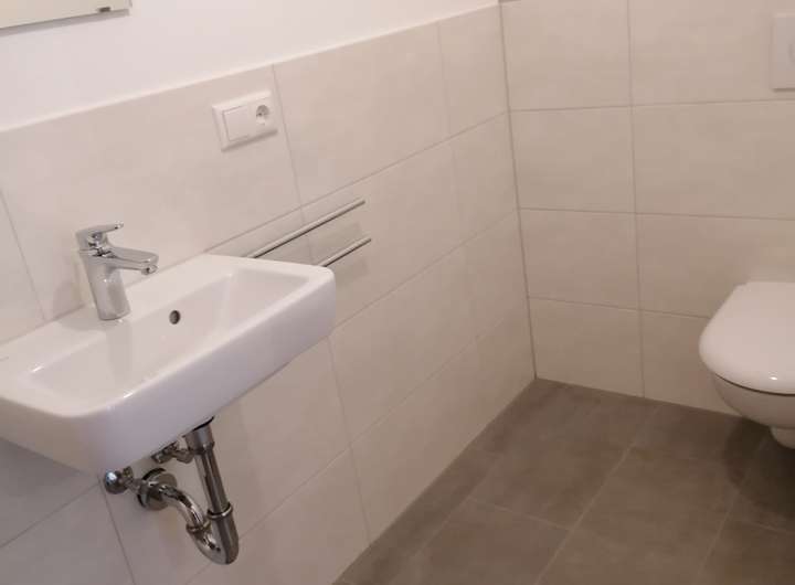 Böden sind mit Fliesen, Vinyl bzw. Laminat verlegt.