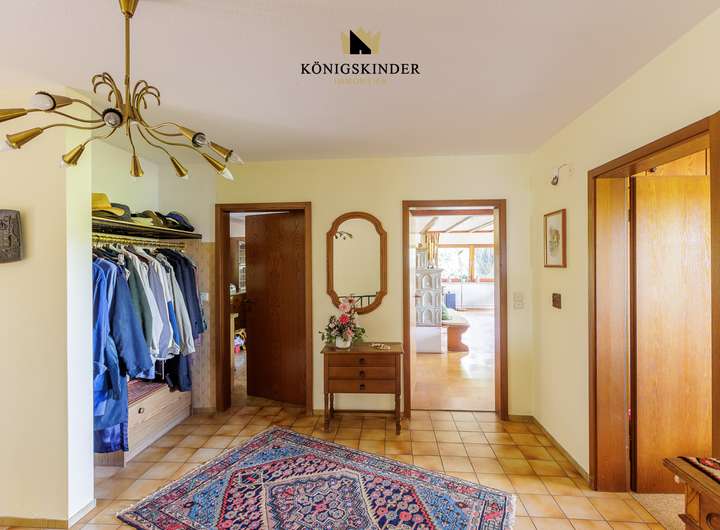 Die DIN Wohnfläche im Erdgeschoss beträgt rd. 155 m², die ausgebaute Nutzfläche im Souterrain, mit eigenem Eingang, beträgt rd. 60 m².