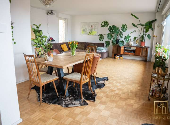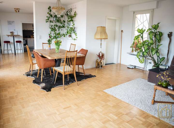 Die Penthousewohnung ist die größte Wohnung im Haus mit insgesamt 4 Zimmer, einem Gäste-WC, Balkon und einer Dachterrasse.