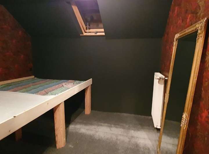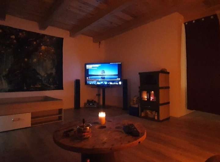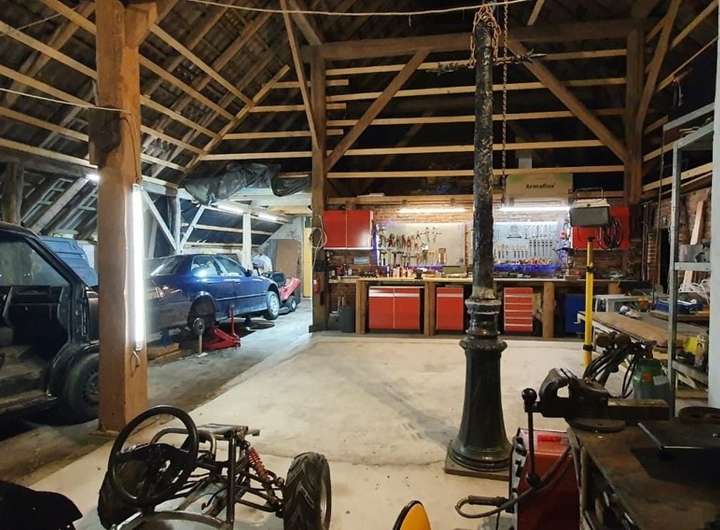 In der Scheune befindet sich momentan der Werkstatt mit abgegrenzter Sitzgelegenheit.
