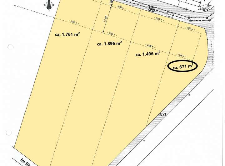 Das Grundstück besitzt eine Gesamtgröße von 671,00 m², wobei die Frontbreite 15m beträgt.