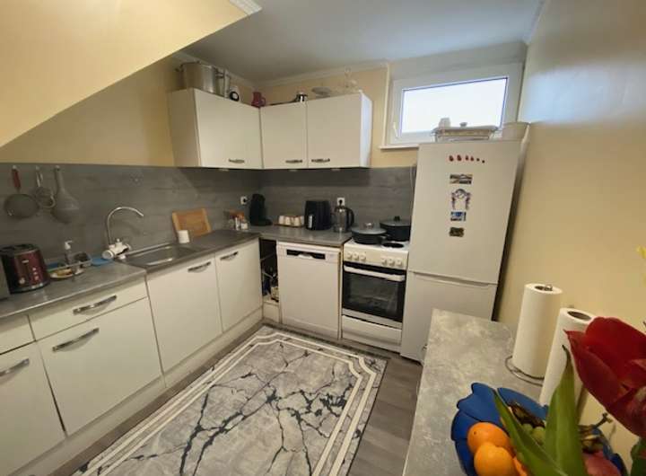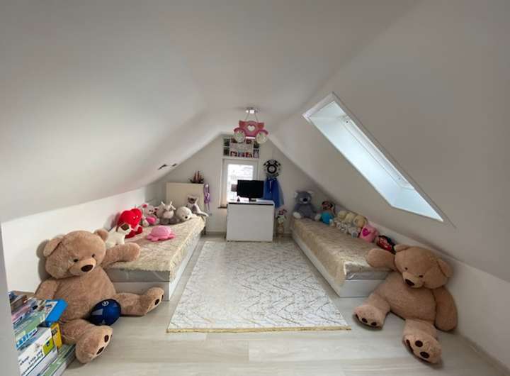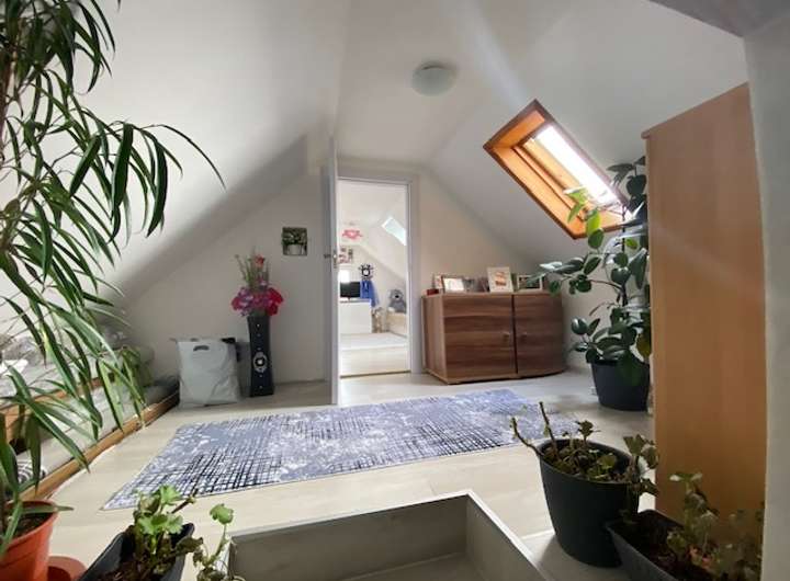 Das obere Stockwerk ist durch ein gemütliches Tageslichtbadezimmer mit Badewanne und Waschmaschinen-Anschluss sowie ein Kinderzimmer und ein Schlafzimmer ausgestattet.