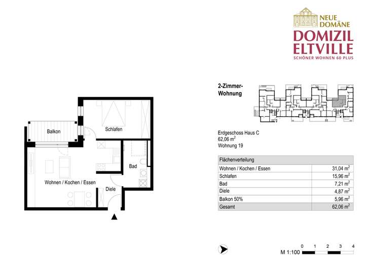 Wenn das aktive Berufsleben zu Ende geht und die Kinder aus dem Haus sind, beginnt für viele Menschen ein neuer Lebensabschnitt mit neuen Plänen und Wünschen. Das DOMIZIL ELTVILLE bietet hierfür ein hochwertiges Wohnquartier, das den besonderen Bedürfnissen der Generation 60 plus gerecht wird: Stilvolle und komfortable Neubauwohnungen im denkmalgeschützten Umfeld mit attraktiven Gemeinschaftseinrichtungen und einem vielfältigen Serviceangebot.