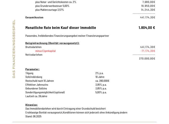 Die Käuferprovision beträgt 3,57 % des Kaufpreises inkl. 19% MwSt. |