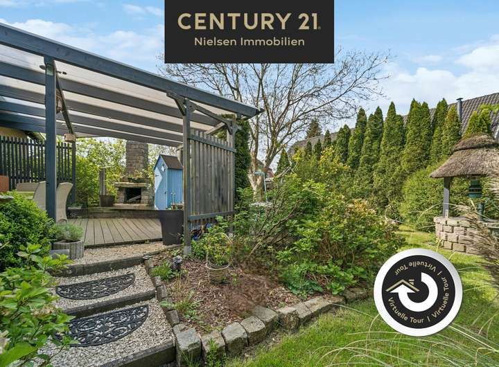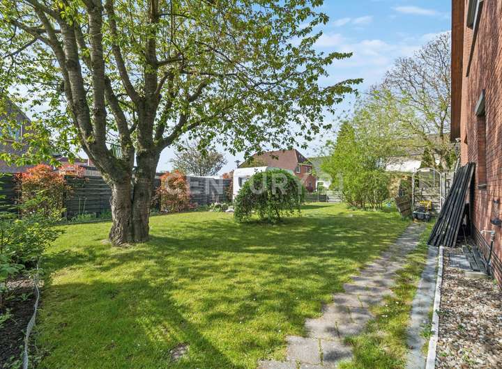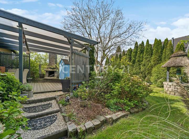 Der Garten wurde mit Liebe angelegt und ist vollständig bepflanzt. Neben der Wohlfühl-Hauptterrasse bietet auch der vordere Bereich eine weitere Terrasse, die praktischerweise von der oberen Wohnung genutzt werden konnte. Die Struktur im Außenbereich eignet sich perfekt für eine klare Aufteilung – ideal bei einer Nutzung durch zwei Parteien.