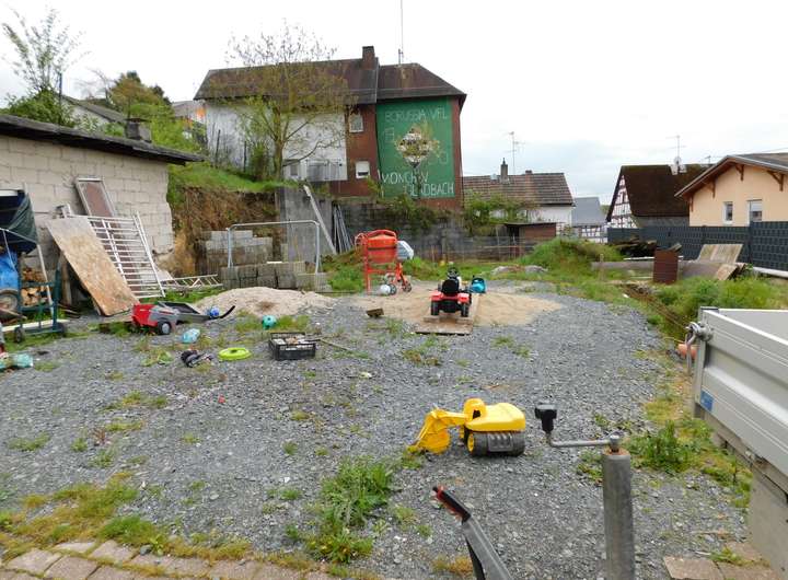 Bauplatz mit genehmigter Bauzeichnung für ein Einfamilienhaus im angrenzenden Garten