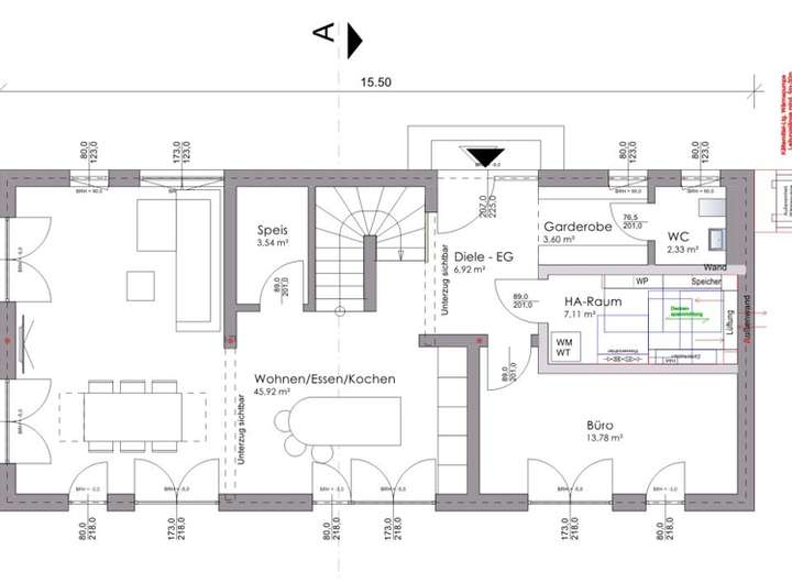Die Planung sieht ein Erdgeschoss und Obergeschoss mit einer möglichen Gesamtwohnfläche von etwa 190m² zzgl. Nutzflächen bei einem genehmigten Baukörper von 7,00m x 15,5m vor. Auch ein Kellergeschoss kann selbstverständlich gebaut werden. Gerne stehen wir Ihnen auf Wunsch auch bei der Auswahl eines geeigneten, regionalen Architekten und Baupartners mit unserer Expertise zur Seite.
