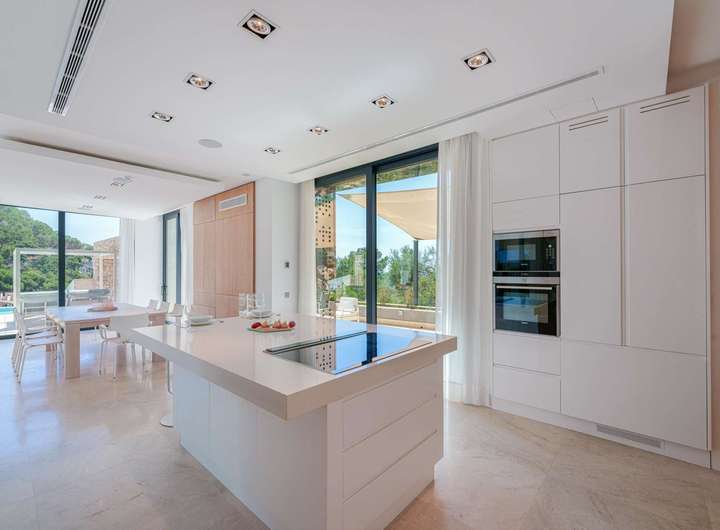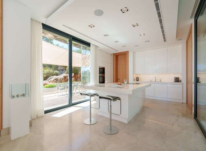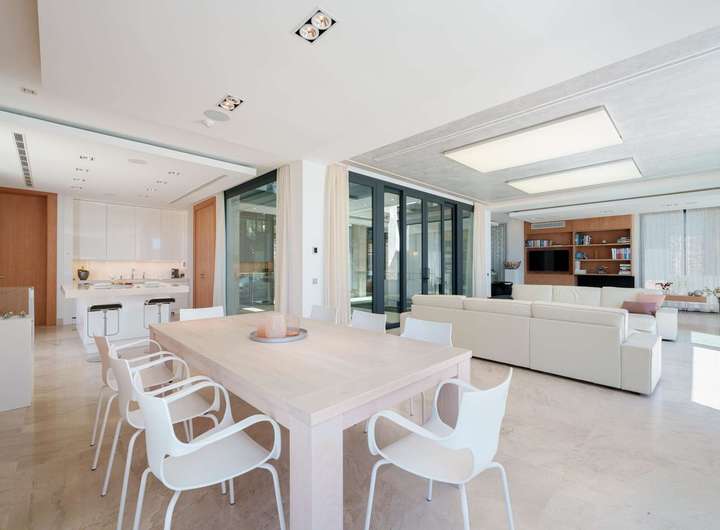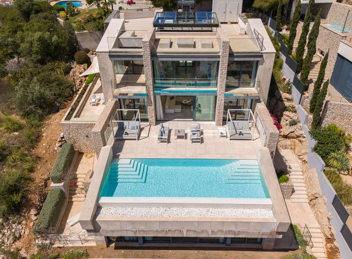 Die verschiedenen Ebenen - vom Erdgeschoss, der großzügigen Parkebene, über drei Wohnetagen, bis hin zu einem atemberaubenden Sonnendeck – verleihen dieser Immobilie einen einzigartigen Charakter und machen diese zu einem wahren Juwel. Fußbodenheizung, vollständige Klimatisierung, hochwertige Markengeräte, exquisite Möblierung und eine optimale Ausrichtung sind nur einige der luxuriösen Merkmale, die dieses Anwesen zu bieten hat.